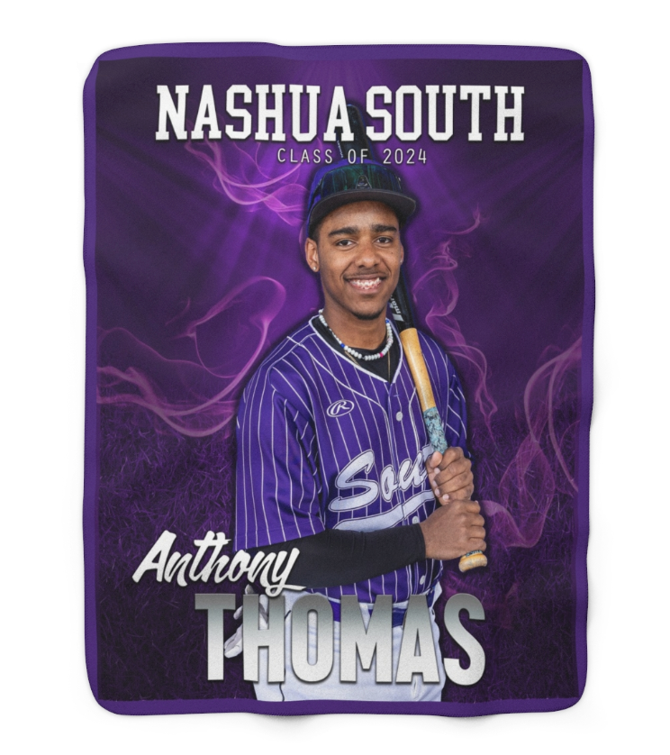 I worked with Nashua South High School to create these custom sublimated 50" x 60" microfleece sherpa-lined throw blankets.